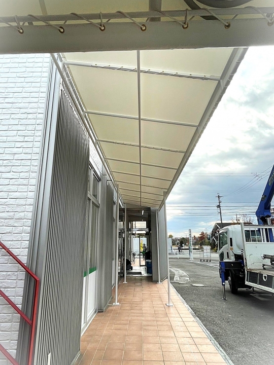 某店舗様に、通路テントを設置させていただきました。