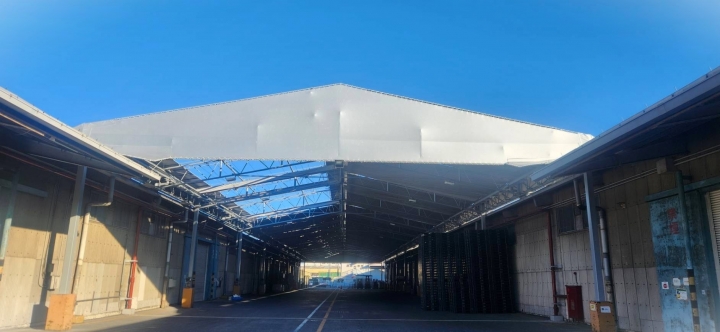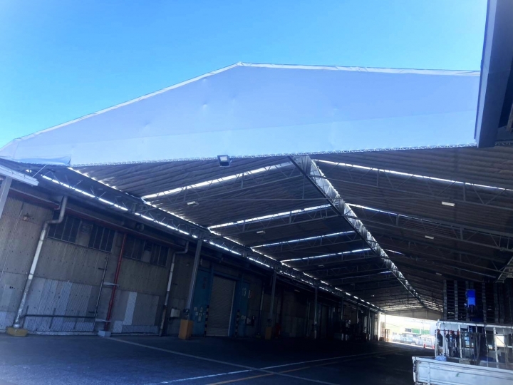 小牧市にて、某工場様の開閉テントの張替えをさせていただきました。