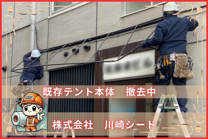- 店舗テント店舗用軒先テントの張替工事店舗用軒先テントの張替工事