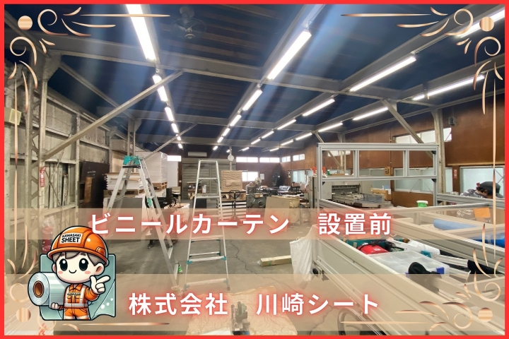 この度は東京都の工場内にてビニールカーテンの設置工事を行わせて頂きました。主な目的は空調効果の向上を目的としビニールカーテンを設置致しました。設置後はやはり空調効果(冷房)の体感が大きく向上したと感じます。